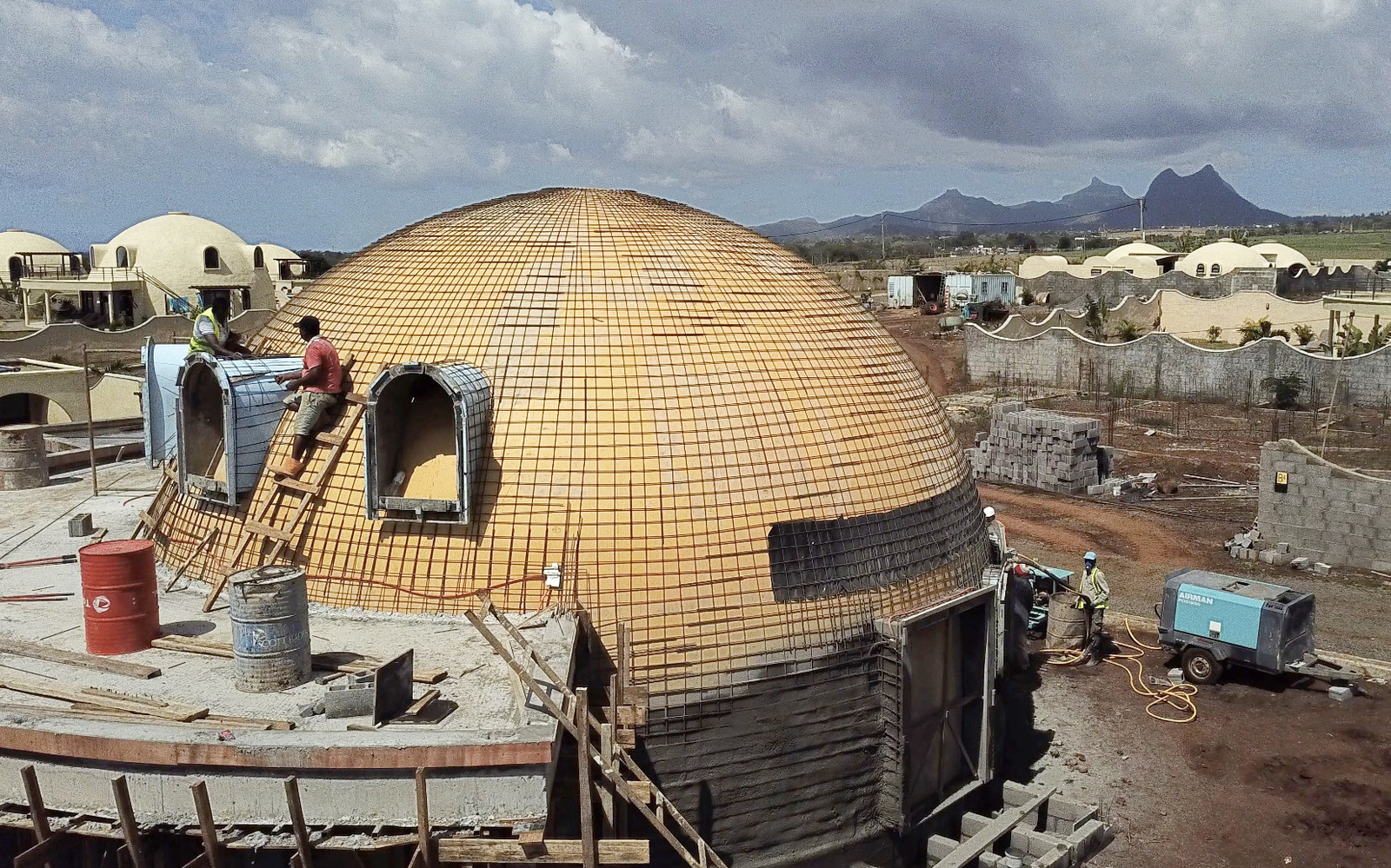 La construction d'une villa en forme de dôme. Un travail minutieux, précis et très solide Cliquez sur la photo au dessus pour découvrir toutes les images de la construction des étonnantes villas en forme de dôme de l'île Maurice. Partager